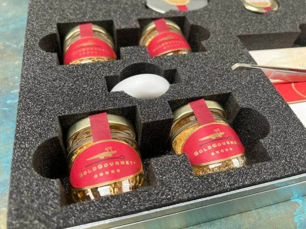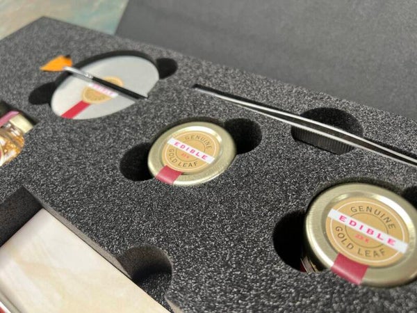 Deze uitgebreide set bevat goud in 23K en verschillende tools.