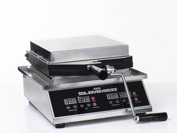 Dankzij Slimmer's nauwkeurige temperatuurregeling op zijn twee Teflon platen, met een drukcapaciteit van 2000 Kg/cm², is het in staat om elk ingrediënt tot een dikte van maximaal 1 millimeter te persen tijdens het koken.